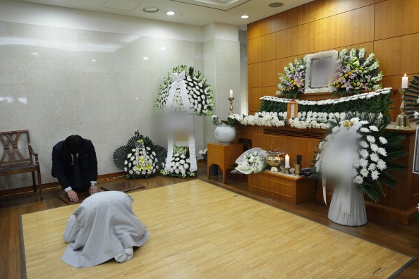 - 빈소에 방문하여 상주께 인사를 드린 후 영정 앞에서 무릎을 꿇고 앉아 분향합니다.