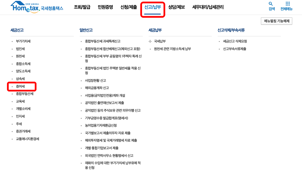 그래서 오늘은 알아두면 유용한 증여세 신고방법 및 납부기한에 대해 살펴보도록 하겠습니다. 증여세에 대한 전반적인 사항은 아래 홈택스 홈페이지를 참조하시기 바랍니다.